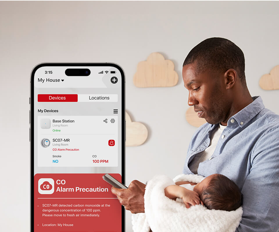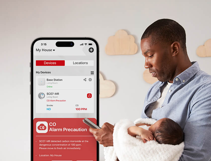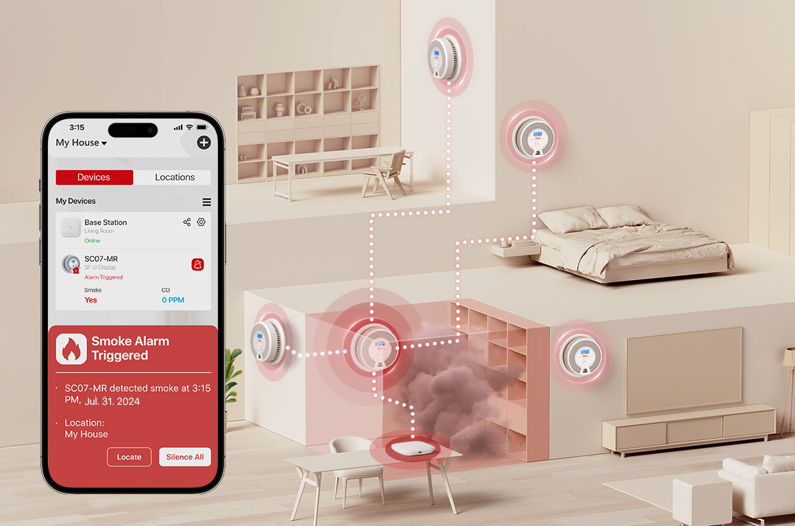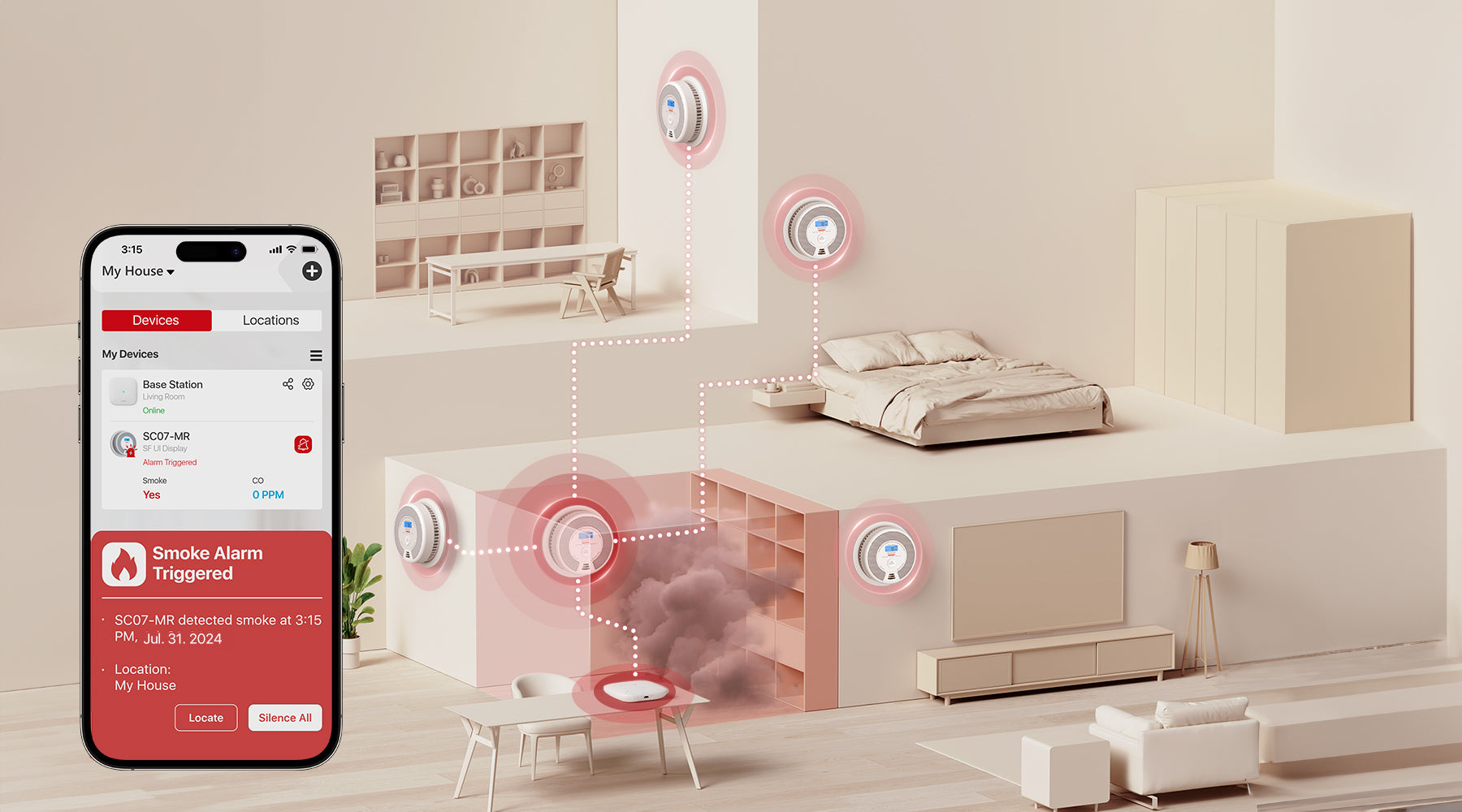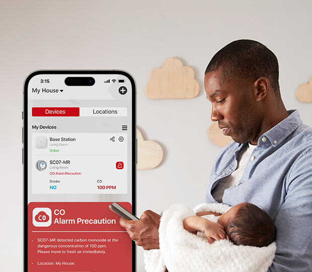 All connected SC07-MR alarms sound simultaneously when one detects a threat, ensuring the alarm is heard throughout your home, and everyone can react quickly to potential dangers.