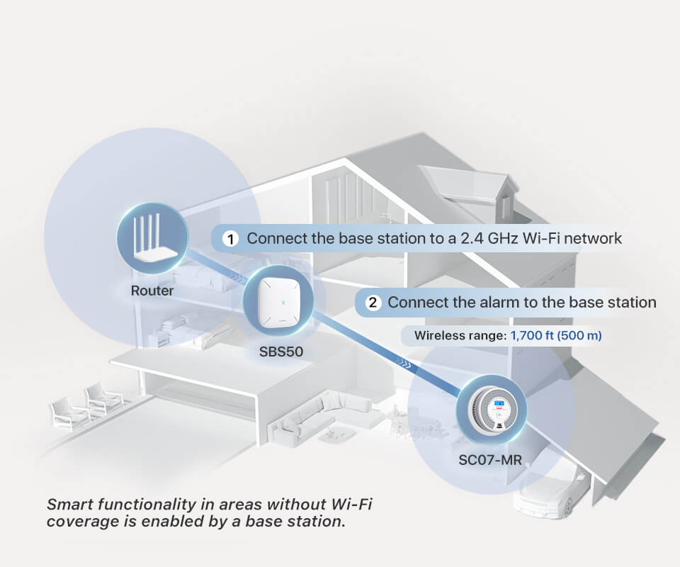 SC07-MR Interconnected Smart Smoke and CO Alarm - 1*Alarm+1*SBS50 Base Station(SC07-MR11)