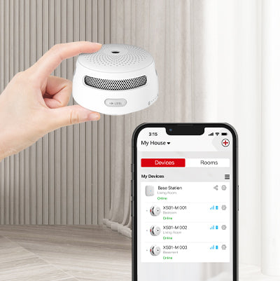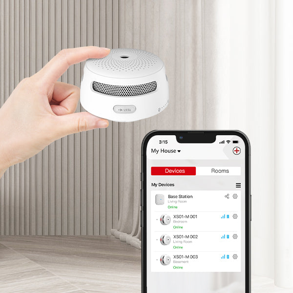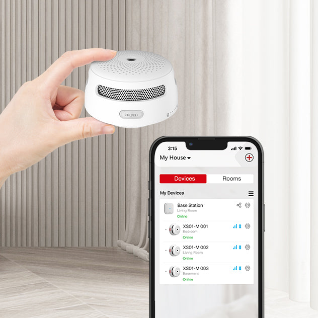 Simply connect your XS01-M smart smoke alarms to the SBS50 base station to create a fire safety system. If one alarm detects smoke, it triggers all the alarms, and push notifications are instantly sent to your mobile app.