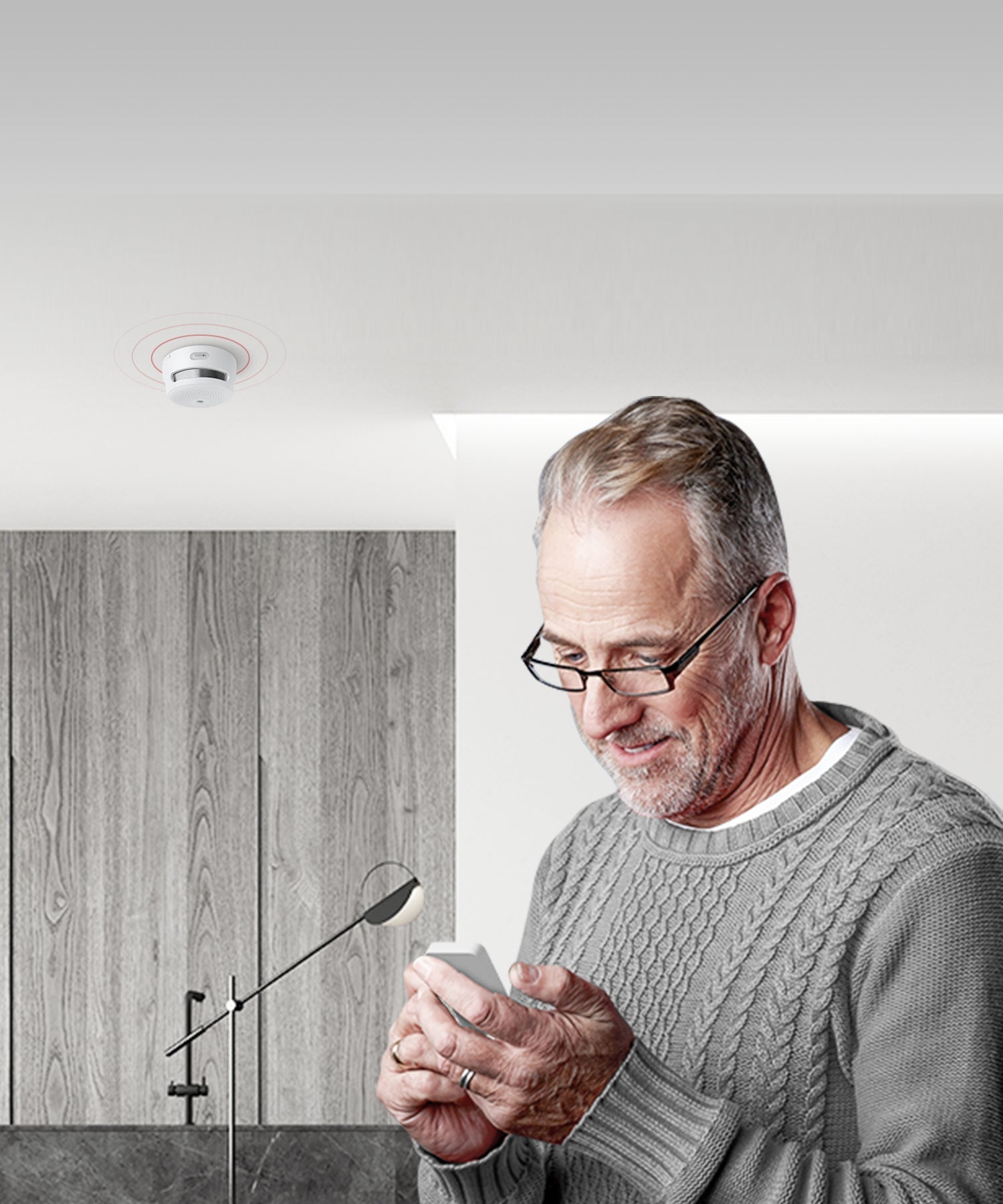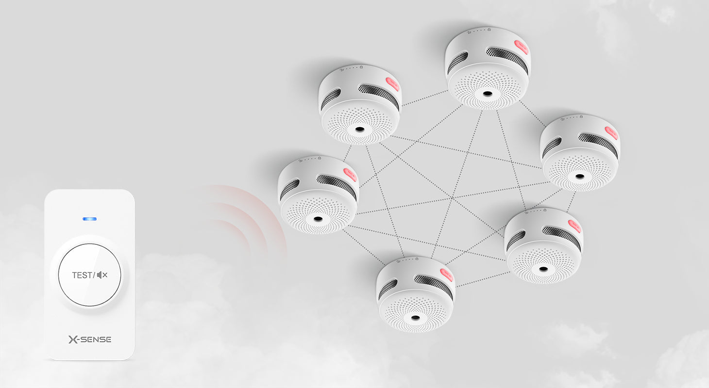- Simply press the test/silence button twice to pair with your Link⁺ series wireless alarms. (Image of XS01-WR Smoke Alarm)
