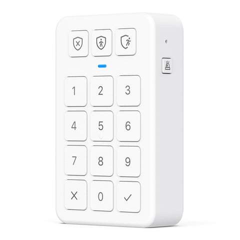 The security keypad offers robust password management, accommodating one master, twelve shared-user, and ten guest passwords, with the ability to schedule access for visitors. It features a panic button that, when pressed for three seconds, triggers an immediate alarm and sends an emergency notification through the app, ensuring rapid response.