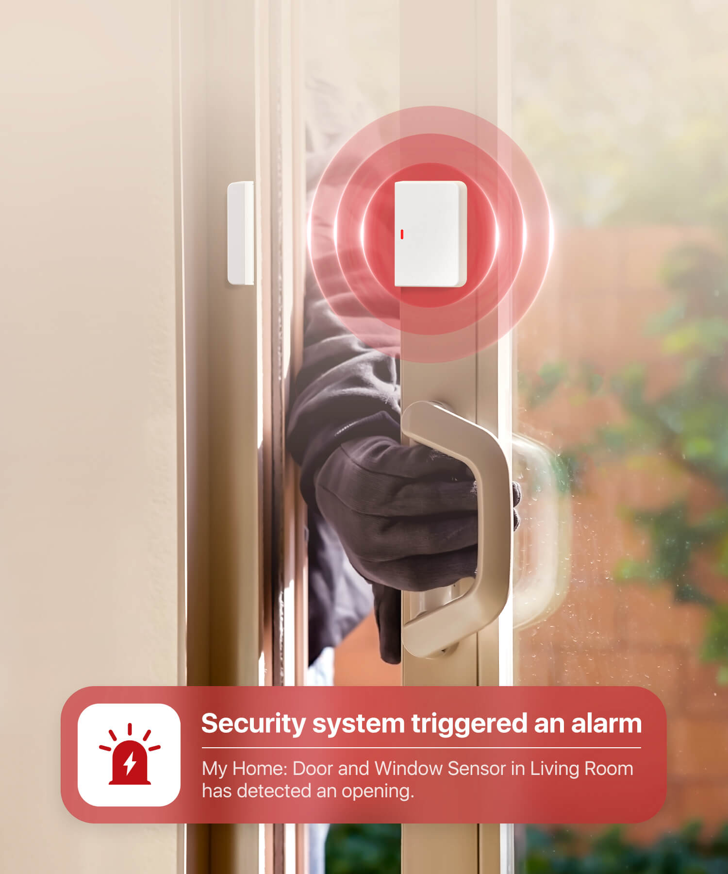 Equipped with door sensors, motion sensors, and the ability to expand up to 45 additional devices, the AS05 system ensures no corner is left unguarded. Install it on all key points including front doors, sliding glass doors, and accessible windows for comprehensive protection.