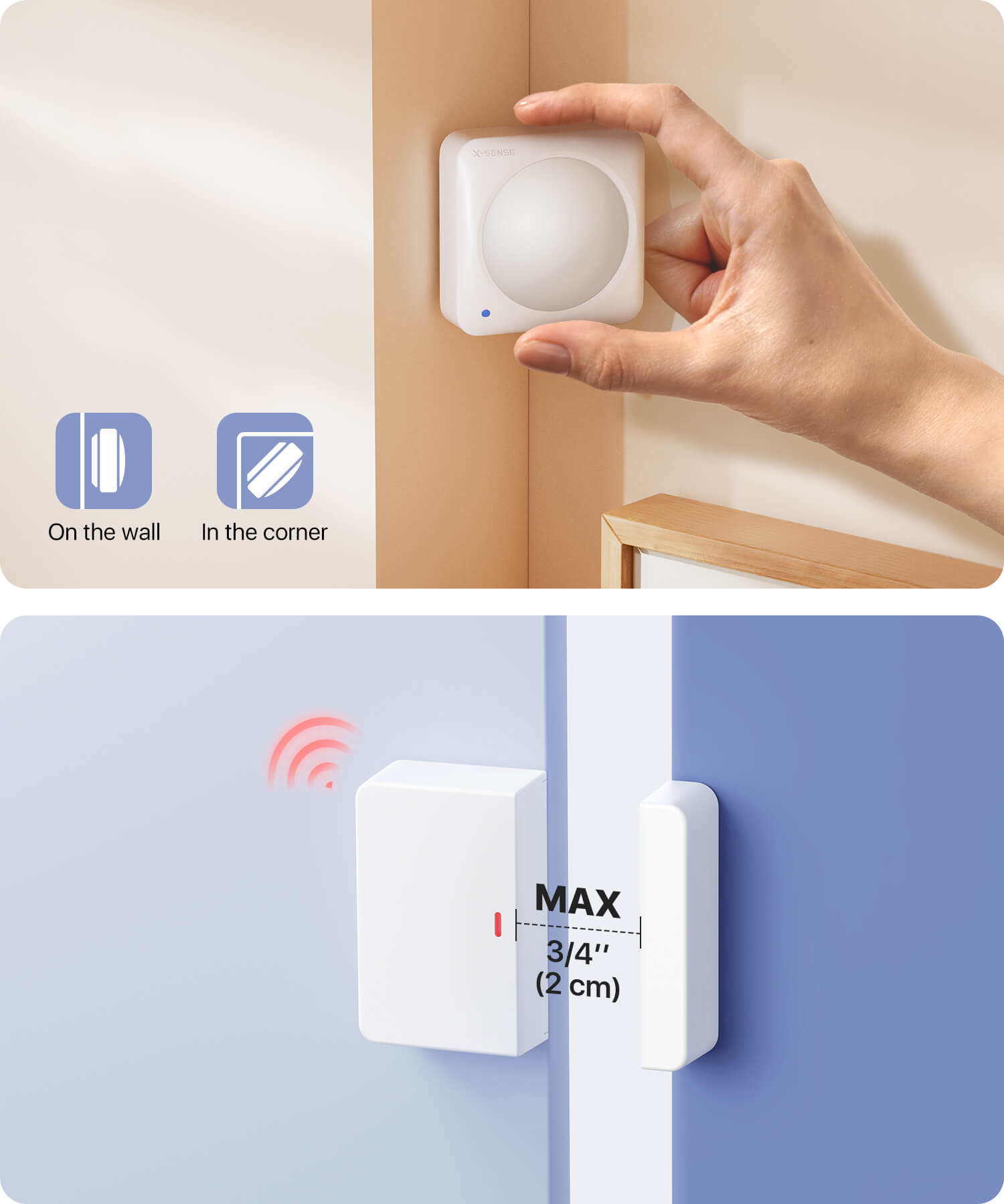 Install your security system without needing professional help, using adhesive tape for a quick setup or screws for a more permanent solution. Easily expand and customize the system to fit your security needs.
