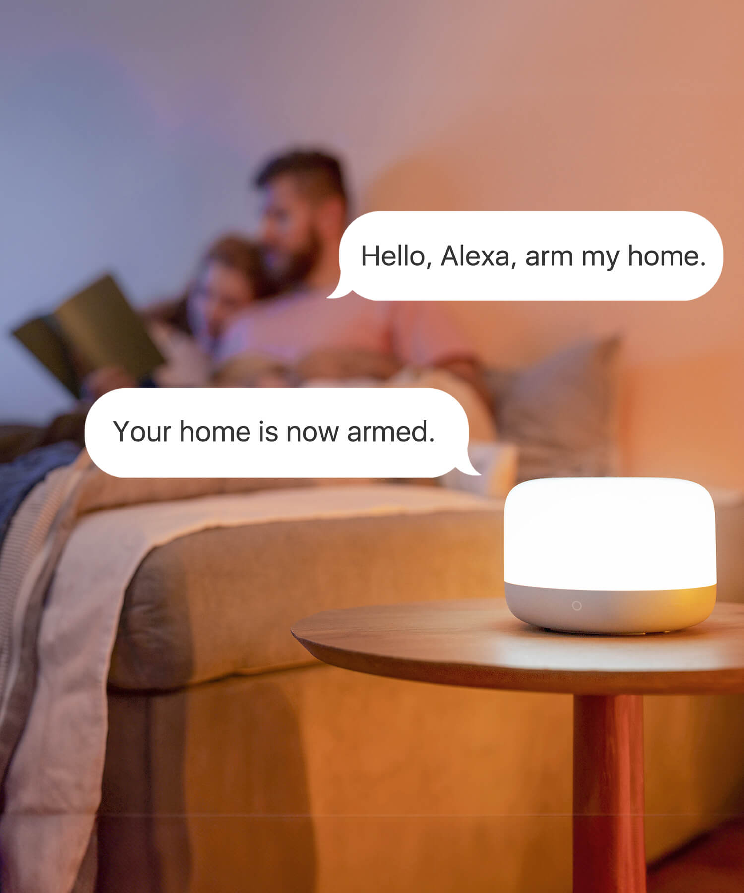 Manage your system hands-free with Alexa integration. Use voice commands to arm/disarm your system and set motion sensor-triggered routines for smarter home automation.