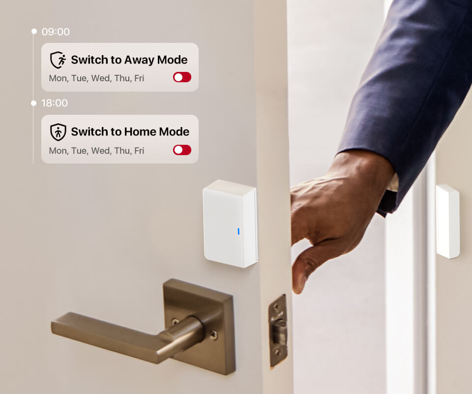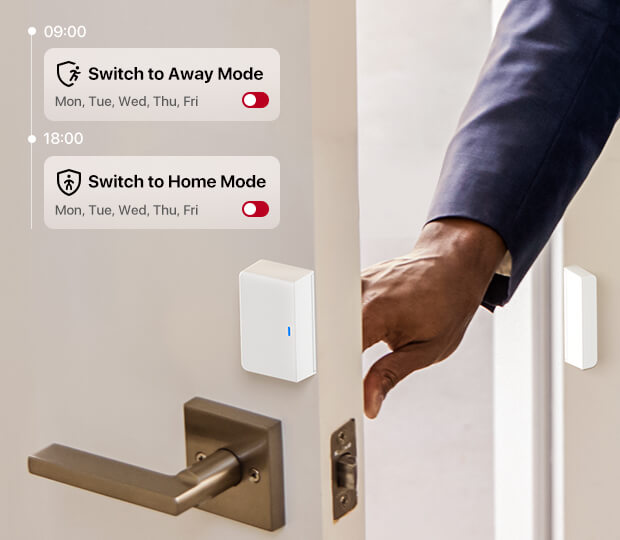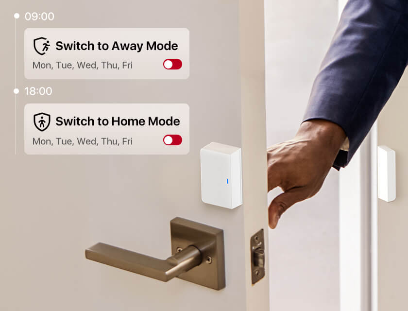 Set up and automate security modes such as Home, Away, and Disarm by establishing schedules that automatically adjust based on the day and time, ensuring that your home is always protected according to your lifestyle.