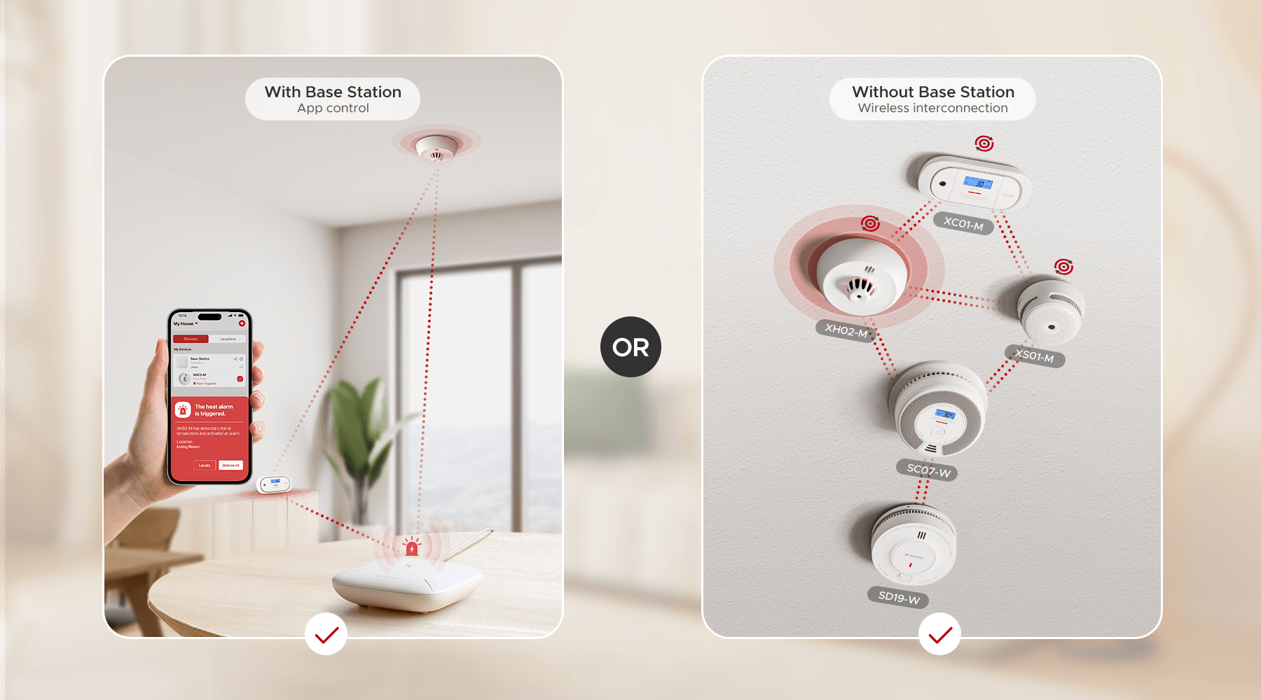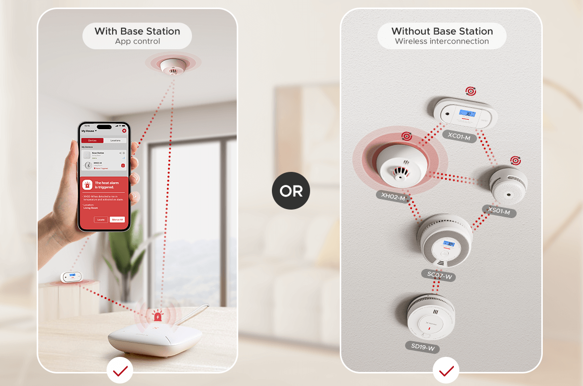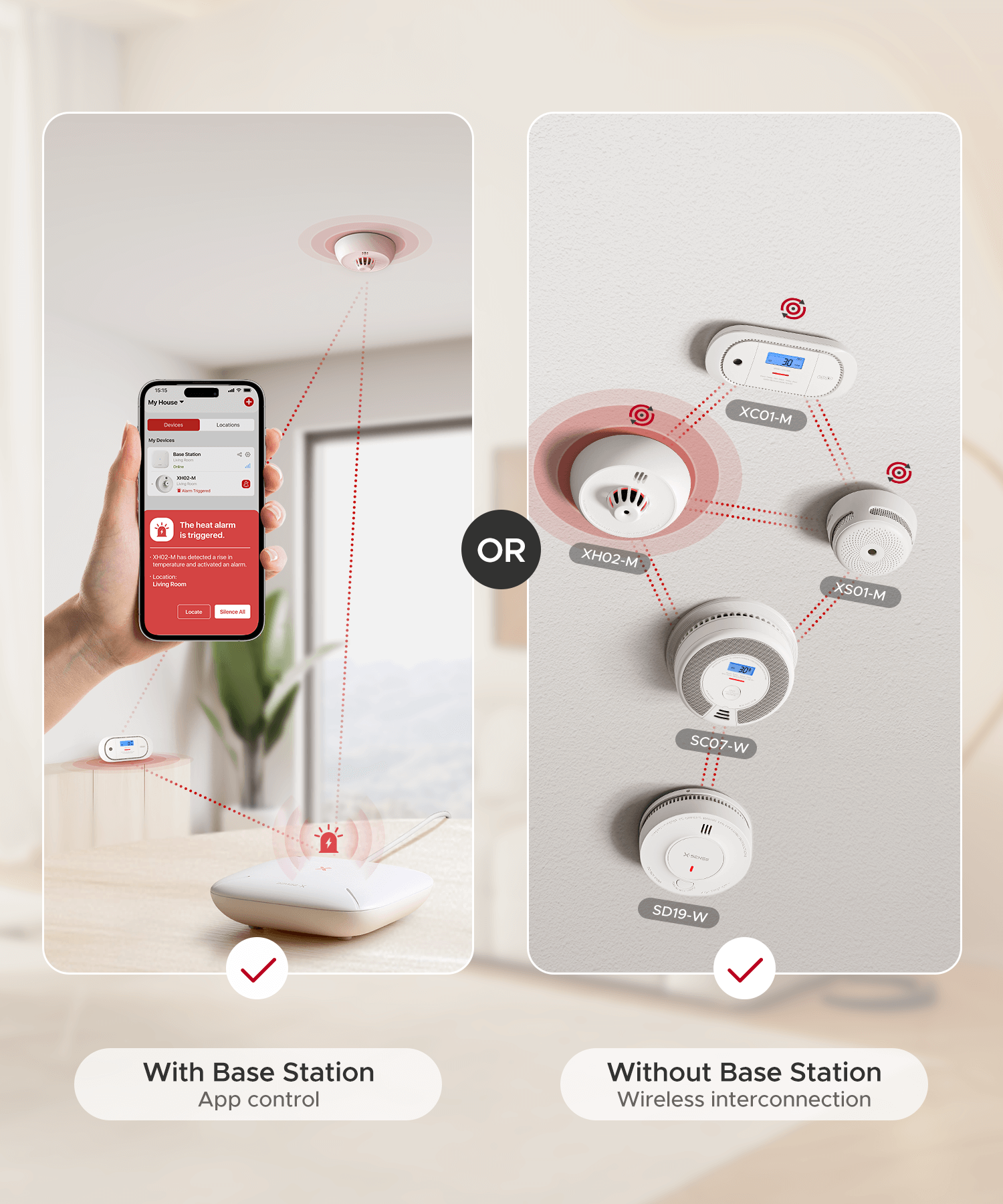 - Link the X-Sense XH02-M with Link+ alarms for essential coverage or opt for advanced control by connecting up to 50 Link+ Pro devices via the SBS50 Base Station. Enjoy features like real-time alerts, remote testing, and silencing, plus device sharing—all accessible through your smartphone app.
